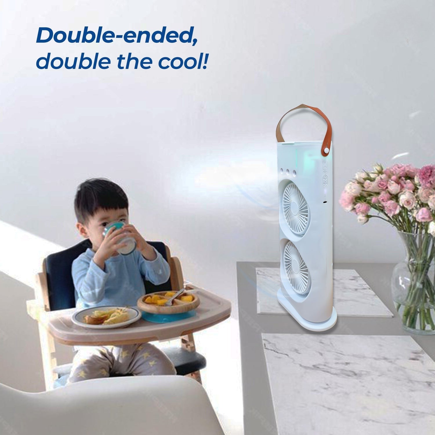 Fan Speed Mode: 3 gears  Double-headed fanThree wind speeds      Colorful ambient light   Available for charging and plugging